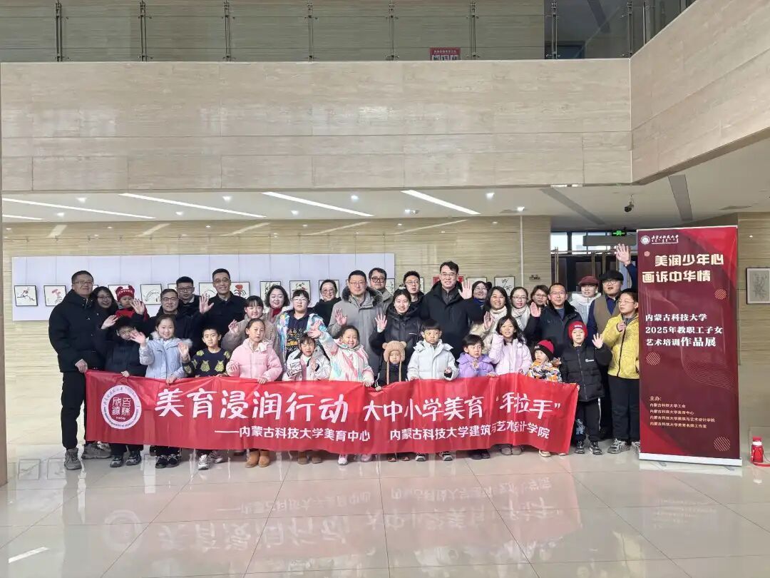 美育名师工作室联合主办的“美润少年心 画诉中华情——2025年教职工子女艺术培训作品展”在明德楼一楼大厅温情启幕。本次展览集中呈现了为期一年的教职工子女艺术素养培训成果,本次入选的五十余幅充满童真与创意的水墨丹青作品,以“兰花秀草”为创作主题,生动诠释了中华传统文化之美,赢得参展师生与家长的一致赞誉。